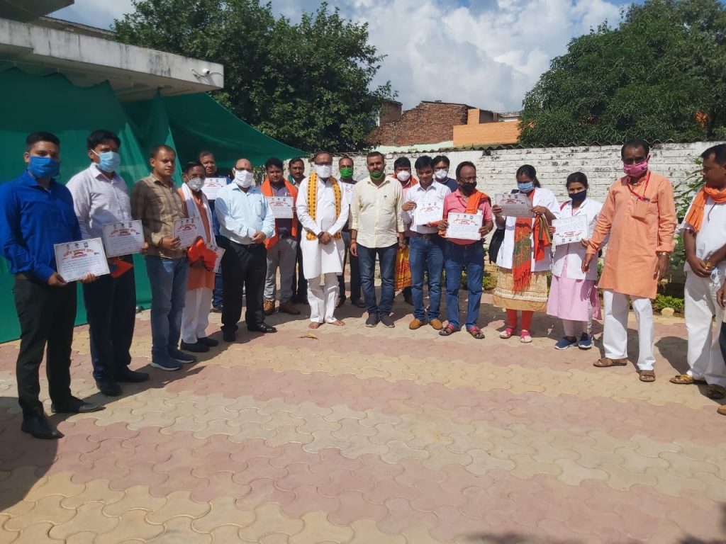 विशिष्ट अतिथि के तौर पर उपस्थित मुख्य चिकित्सा अधिकारी एस के उपाध्याय ने कहा कि कोरोना वायरस कोविड-19 से भयभीत न हों बल्कि उसका डटकर मुकाबला करें हमारे स्वास्थ्य कार्यकर्ता निरंतर चिकित्सा सेवा व जांच में जुटे हैं. किसी भी प्रकार की समस्या होने पर तत्काल चिकित्सक की सलाह लें और हमारे टोल फ्री नंबर पर संपर्क करें उन्होंने कहा कि दो गज की दूरी मास्क जरूरी के स्लोगन का पालन करें. भाजपा के उपाध्यक्ष उदय भान कुशवाहा ने कहा कि हम सभी को एक साथ मिलकर इस महामारी से लड़ना है और यह जंग जितनी है.