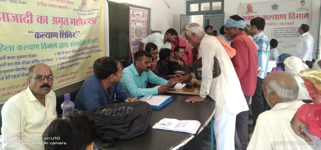 जालौन(उरई): जिलाधिकारी के निर्देशानुसार डकोर ब्लॉक में महिला कल्याण विभाग, समाज कल्याण विभाग एवं दिव्यांगजन सशक्तिकरण विभाग की ओर से पेंशन शिविर का आयोजन किया गया।