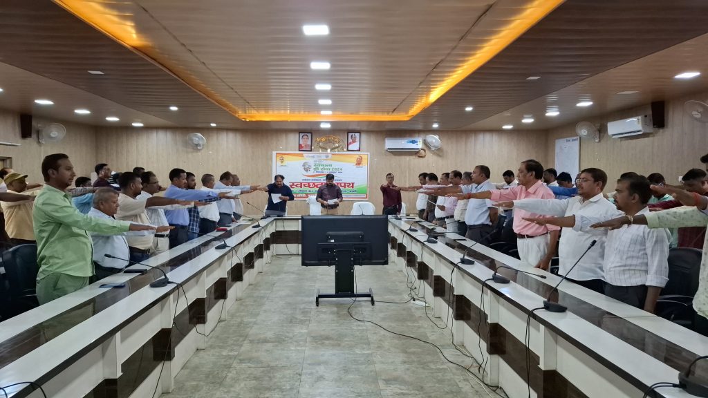 श्रावस्ती में स्वच्छता ही सेवा-2024 अभियान के तहत आज कलेक्ट्रेट सभागार में जिलाधिकारी अजय कुमार द्विवेदी ने सभी अधिकारियों और कर्मचारियों को स्वच्छता की शपथ दिलाई. इस अभियान को 14 सितम्बर से 01 अक्टूबर तक स्वभाव स्वच्छता-संस्कार स्वच्छता की थीम पर पूरे देश में मनाया जा रहा है, जो प्रधानमंत्री और मुख्यमंत्री के निर्देशानुसार संचालित है.